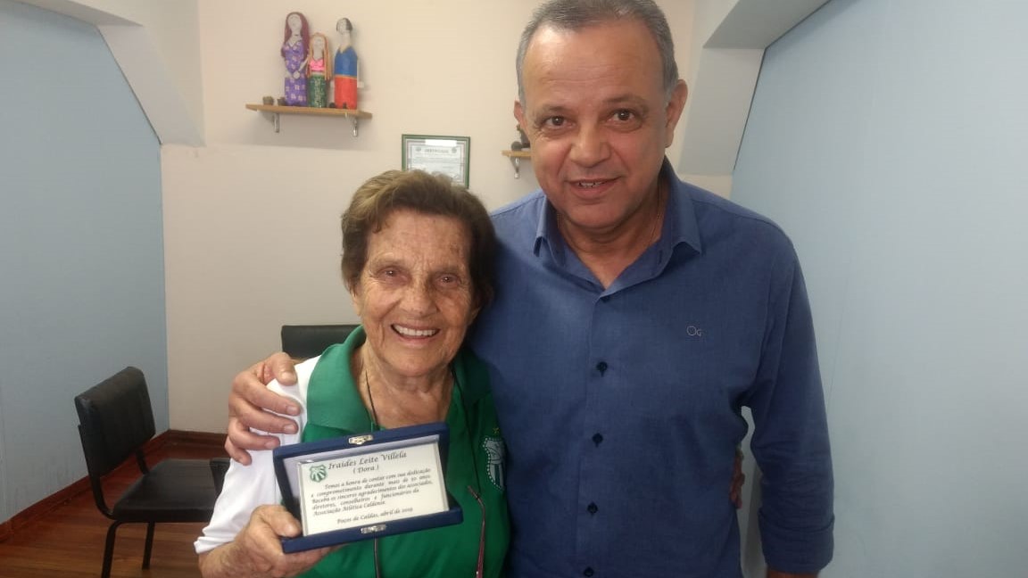 A Associação Atlética Caldense, através de seu presidente Rovilson Ribeiro, homenageou Iraíde Leite Villela, funcionária em atividade com mais tempo de serviços prestados ao clube. Dora, como é mais conhecida, trabalha atualmente no vestiário feminino das piscinas e recebeu uma placa com mensagens de agradecimento pelos 56 anos dedicados à instituição, em alusão ao Dia do Trabalhador.