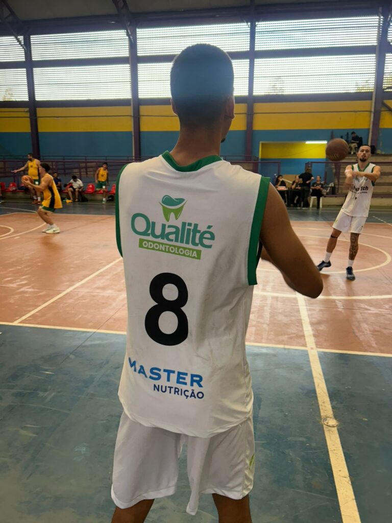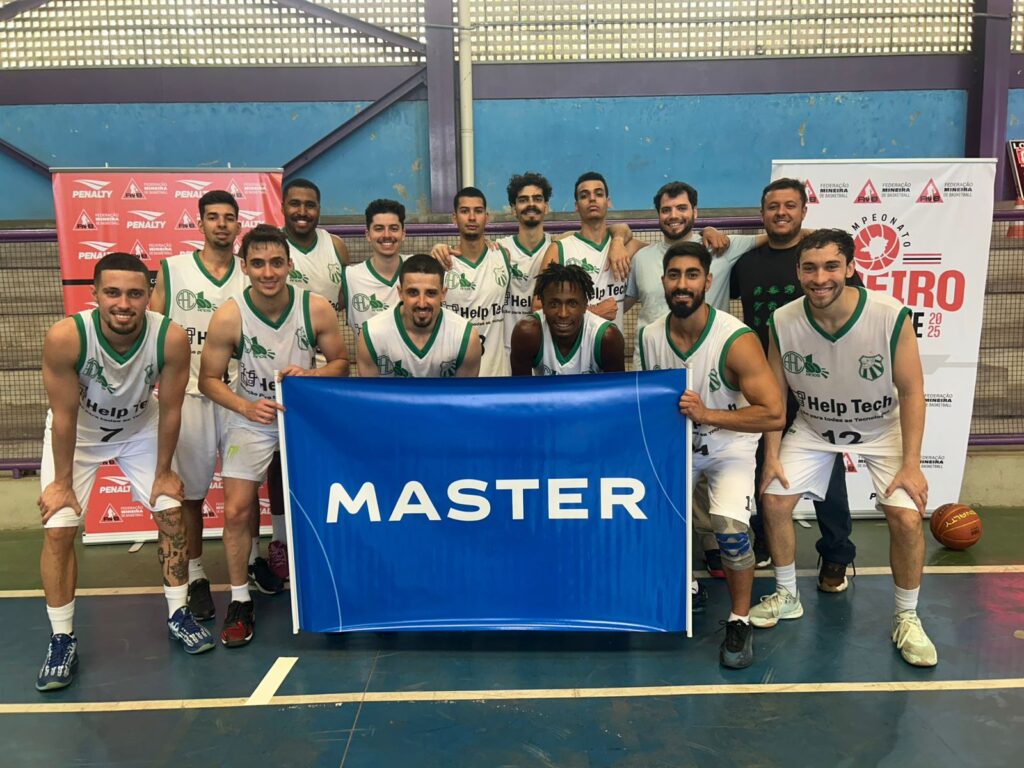 O time de basquete adulto da Caldense tem o apoio da HelpTech, Qualité Odontologia, Master Nutrição e PoçosTec.
