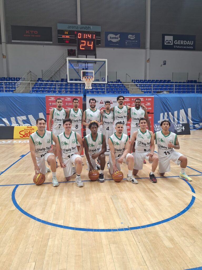O time de basquete adulto da Caldense tem o apoio da HelpTech, Qualité Odontologia, Master Nutrição e PoçosTec.