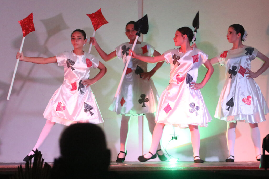 Já a professora Thelma complementou destacando a metodologia do balé. “No primeiro semestre trabalhamos toda a parte técnica, a consciência corporal e o programa de passos de cada nível. No segundo semestre começamos a montagem do espetáculo dentro de um tema, aplicando tudo o que foi aprendido. Neste ano, o tema foi ‘Alice no País das Maravilhas’. Além da técnica, houve um grande trabalho de interpretação artística para encarnar as personagens”, esclareceu.